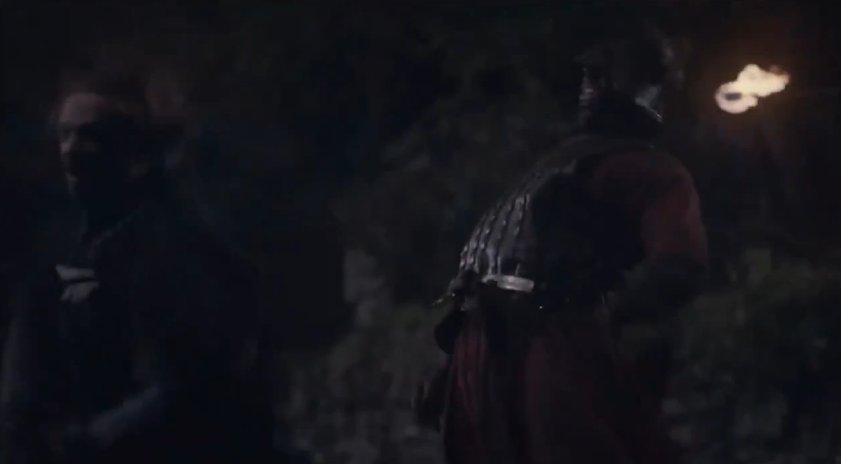 At 1:11 we see a Lannister man-at-arms and armored knight draw their swords. It is dark. This is a new shot and I wonder if this relates to the next couple of new shots.